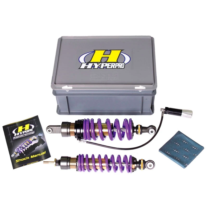 Este kit de amortiguación Hperpro incluye amortiguador delantero y amortiguador trasero regulable.