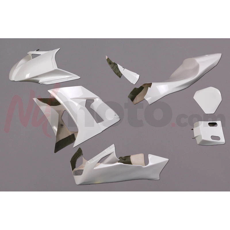 Carenados blancos: Fibra de vidrio FLEXI, Aral blanco 9003 3 amplias capas de refuerzo de carbono/kevlar en los puntos de montaje. Resistencia a la temperatura: 100 ºC