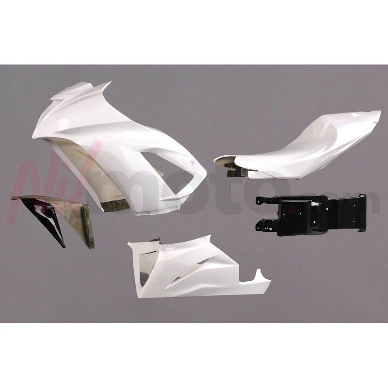 Carenados blancos: Fibra de vidrio FLEXI, Aral blanco 9003 3 amplias capas de refuerzo de carbono/kevlar en los puntos de montaje. Resistencia a la temperatura: 100 ºC