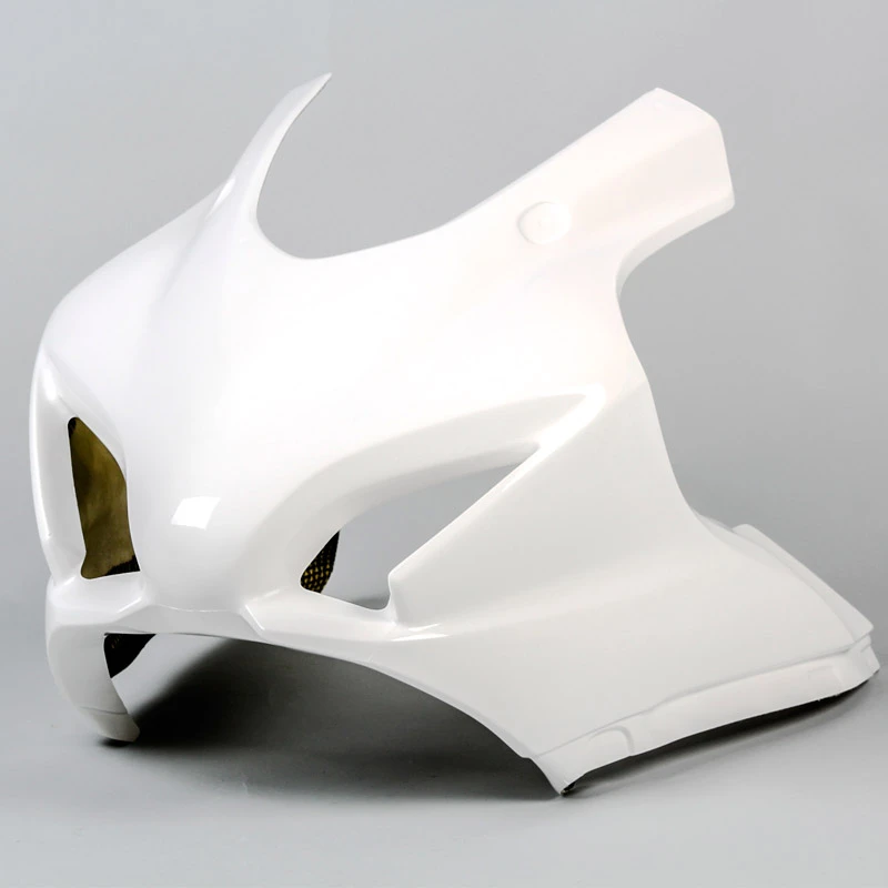 – Carenados blancos: Fibra de vidrio FLEXI, Aral blanco 9003 + 3 amplias capas de refuerzo de carbono/kevlar en los puntos de montaje. Resistencia a 100 ºC de temperatura.