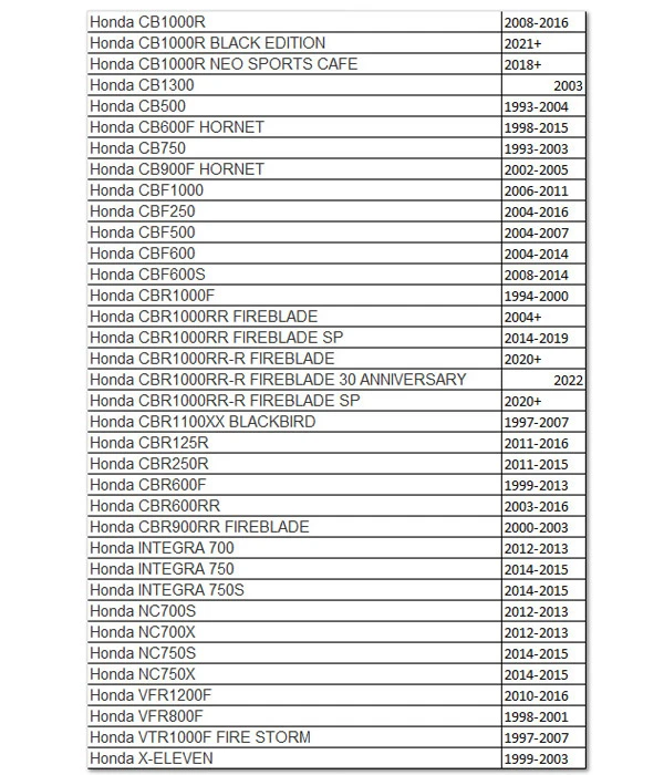 Contrapesos modelo Sport de Puig disponibles en varios colores para los modelos de HONDA indicados en el siguiente listado.