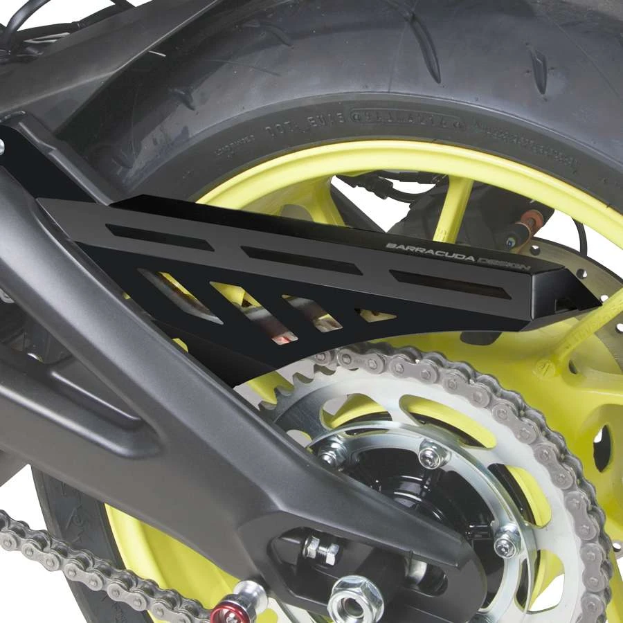 Cubrecadena en aluminio negro de la marca Barracuda específico para su instalación en YAMAHA MT-09 (2017-2020