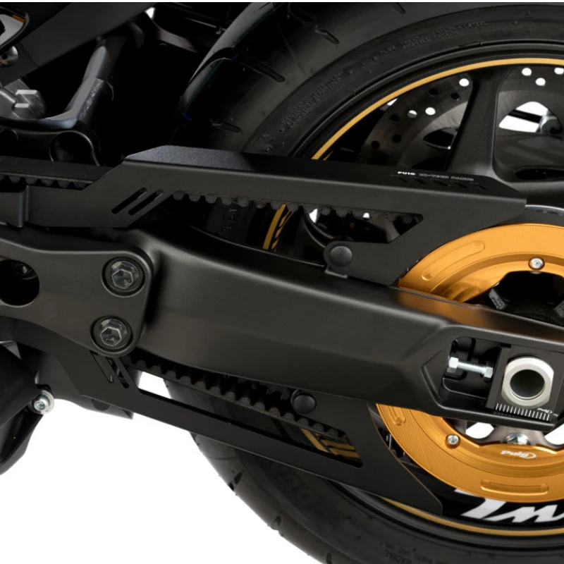 Cubrecorrea de aluminio en color negro para proteger la cadena de tu moto de Puig para Yamaha T-MAX 530-560