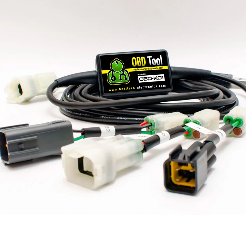 OBD de Healtech es una herramienta de diagnóstico PROFESIONAL pero mucho más económica que la oficial con Software actualizable. Para motos Kawasaki