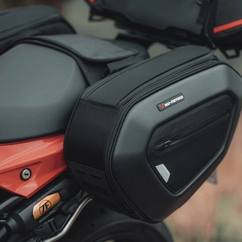 Alforjas PRO BLAZE H de SW-Motech diseñadas específicamente para su instalación en BMW F 900 R/ XR 2020-. Incluyen todo lo necesario para su montaje.