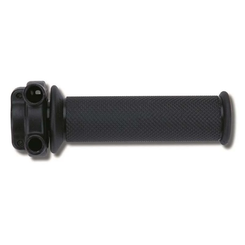 Acelerador de aluminio con puños abiertos. Con puño derecho sobremoldeado en la caña.