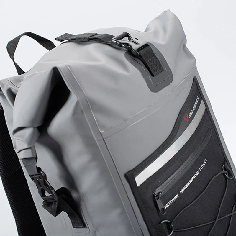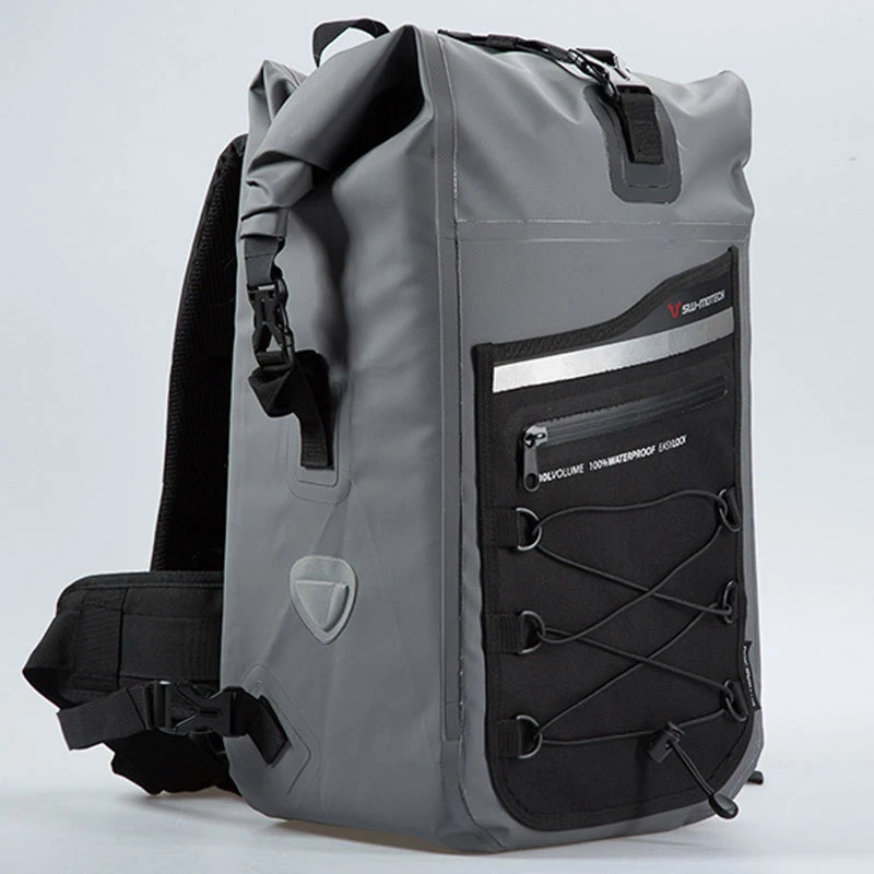 Mochila impermeable de SW-Motech modelo DryBag 300 de 30L de capacidad, resistente a cualquier clima radical para mantener protegido todo lo que se encuentre en el interior Gris-Negro