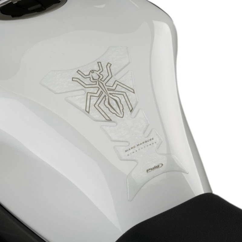 Pegatina/adhesivo Protector del depósito, modelo Hormiga grande, adhesivo universal. Nuevo, Marca PUIG. Logo Marc Marquez Logo en color Transparente.