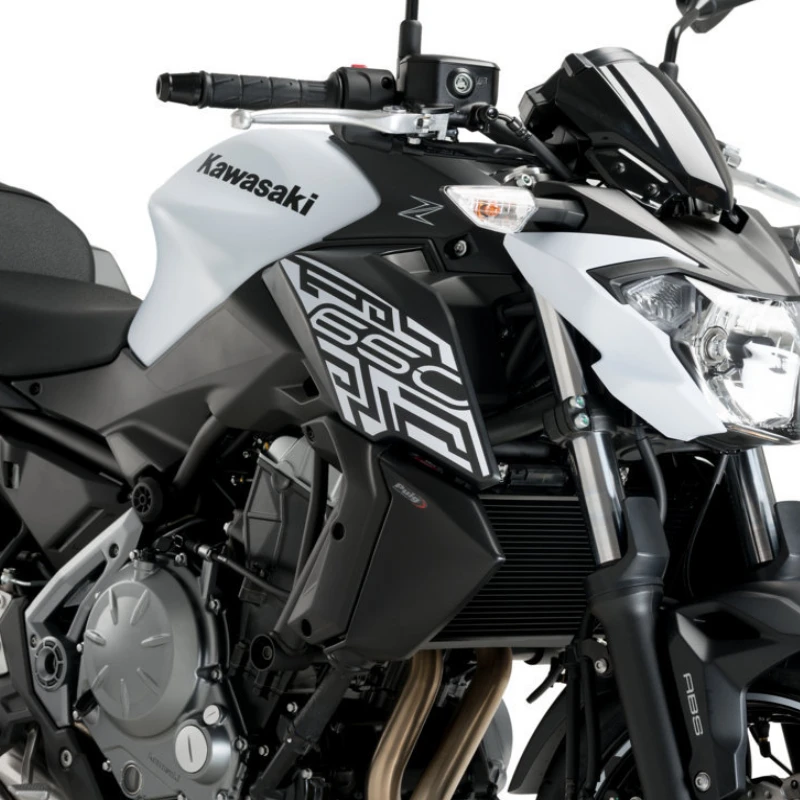Tapas radiador marca Puig para Kawasaki Z650 17-19. Estas son ideales para cubrir grandes huecos vacíos en su moto. Disponible en Negro-Simil Carbono.