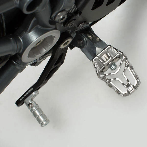 Los reposapies SW-MOTECH tienen numerosos detalles como una zona de contacto de grandes dimensiones, una superficie de perfil, ajuste para dos posiciones diferentes o más.