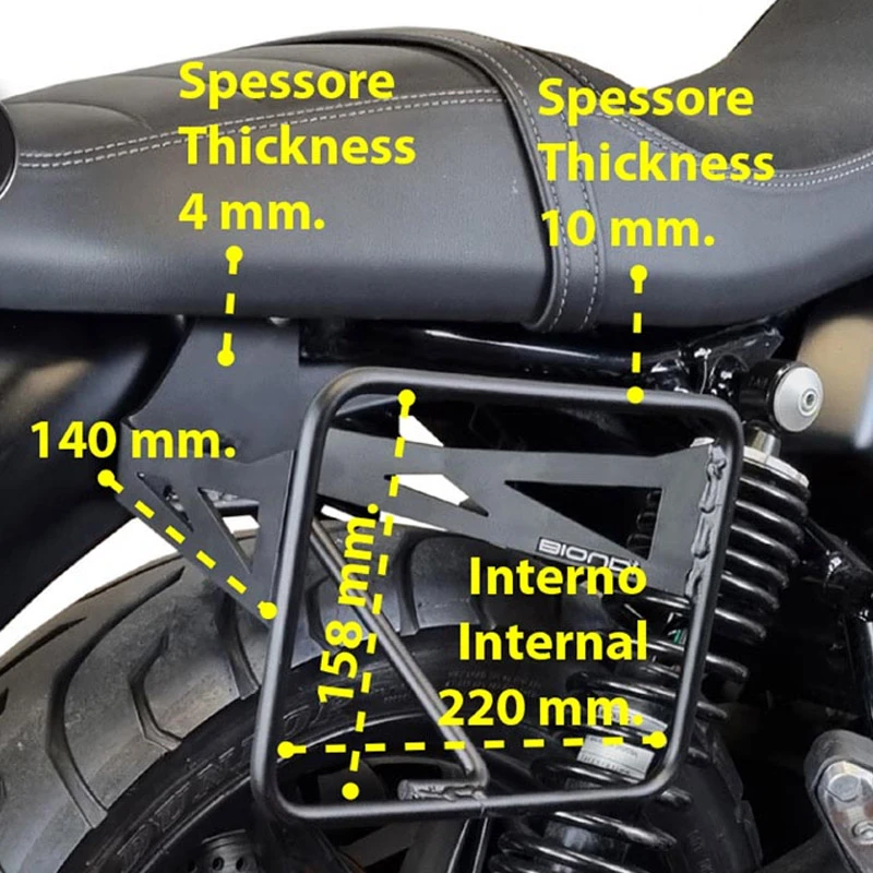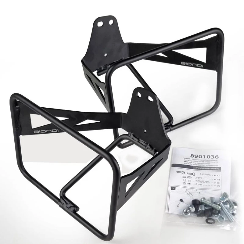 Soporte lateral Biondi específico para MOTO GUZZI V7 IV SPECIAL/ STONE 2021+. Permite la instalación de alforjas o bolsas laterales universales.